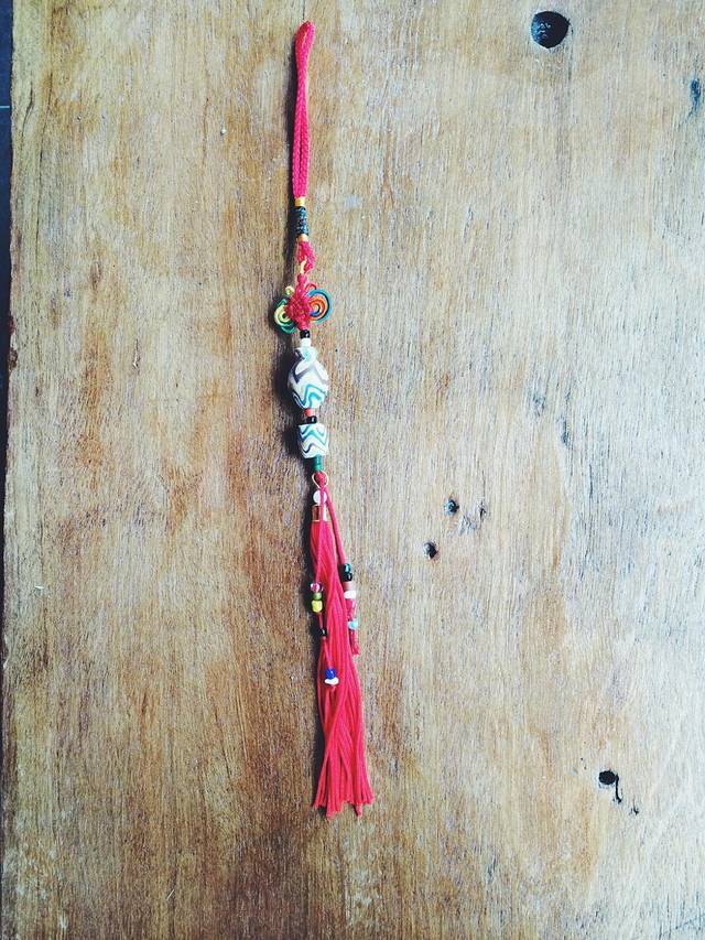 下午我们在老师的指导下做了琉璃珠挂饰,每种琉璃珠都是手工窑烧,有其特殊的含义。