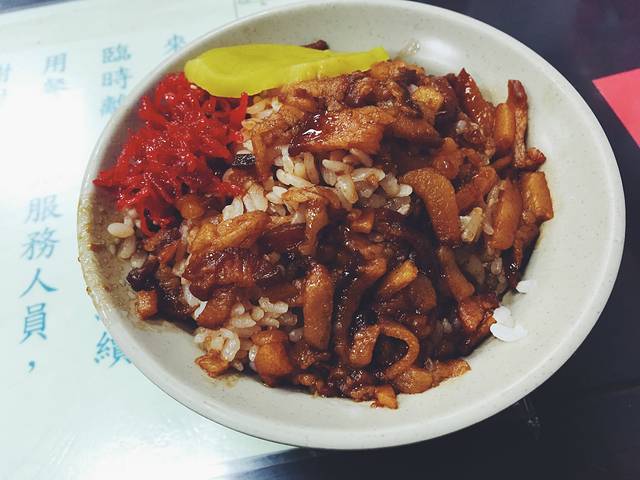捷运中正纪念堂出口不远的金峰鲁肉饭已营业30年,台北的朋友说这间是台北最好吃的鲁肉饭,着实名不虚传,鲁肉肥瘦恰好,卤汁浇在饭上特别润口。人多到需要拼桌,食客几乎都是老客了。我们点了一份“大陆妹”,边吃边讨论着大陆妹究竟是什么蔬菜,对面的阿姨突然插话:“那是菠菜吧。”我诧异的说,“可这似乎和大陆的菠菜味道不同。”她说,“全世界的菠菜都是一样的呀。”此时另一位食客开口了,“不,世界上光地瓜就有1000多个品种,这蔬菜更不用说了。”饭桌上陌生人的讨论变得愈来愈有意思,这种饭点文化大概是让我喜欢上台北的一个原因。