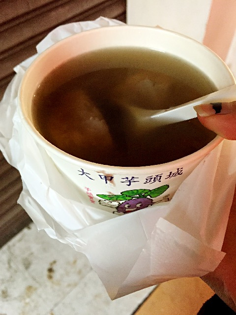 大甲芋头城:店员看到我戴着口罩以为我感冒了,特地问我是否需要在汤底里加姜茶,芋头不像其他店家那样做成芋泥,保持着本身的美味。