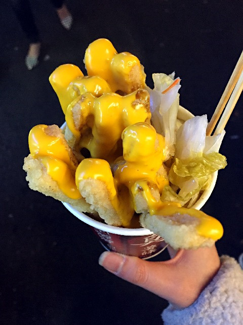 论及夜市文化,台湾自然当仁不让。在士林夜市被观光客占领之时,宁夏夜市默默的运营着,虽短小却精悍。大排长龙的芋头饼非常推荐,现做现炸,外层的芋泥面团香酥又绵软,搭配内里的肉松和蛋黄,口感丰富,烫口却忍不住的咬,连没有内陷的小芋球也很好吃。另外还有诸多当地小吃可以一试。