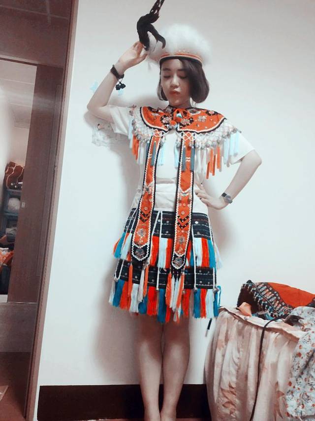 时至凌晨,我们说起很想穿原民服饰,来自北部阿美族的妈妈爽气地拿出自己陪嫁的衣服让我们试穿。