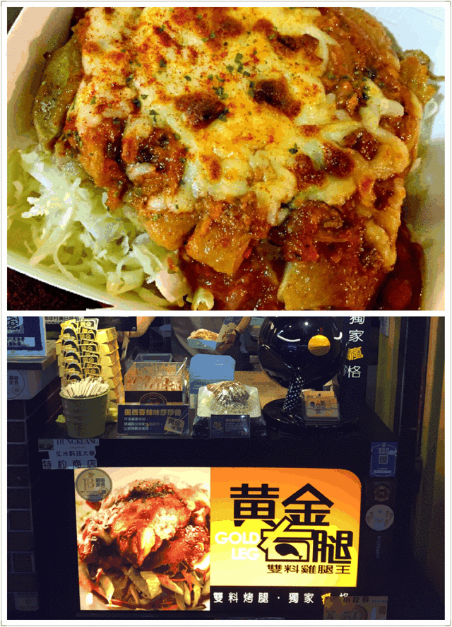 黄金右腿:烤的鲜嫩的鸡腿焗上芝士,趁热吃很好吃。