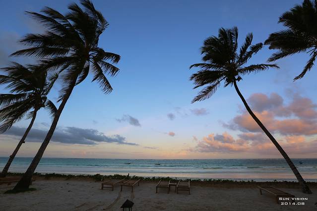 收拾洗漱一番 我们还是决定不辜负这份美景 来到海滩找个躺椅躺下 在日光浴与海浪拍打声中睡了个甜甜的午觉 一觉醒来已是傍晚时分 海滩边有不少人了 这里的住客几乎都来自欧洲 我们是岛上唯一的亚洲身影。起身到bar买矿泉水 在非洲是不建议喝烧开的自来水的 酒店也基本不配热水壶 所以我们提前在淘宝上买了个500ml的旅行电水壶 效果很好 3分钟烧开。
