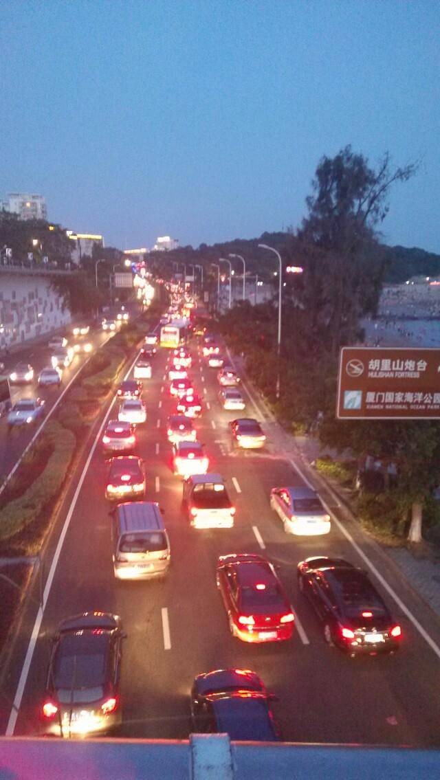 白城沙滩大桥上,车水马龙,夜降临