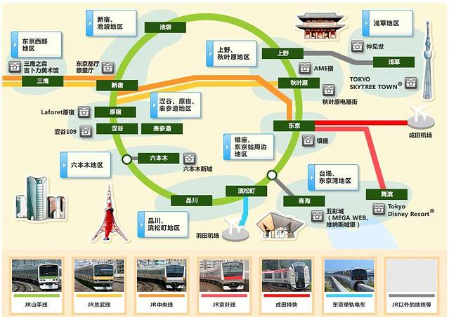 东京的上野公园,秋叶原,浅草寺,新宿都在JR山手线上,交通很方便。