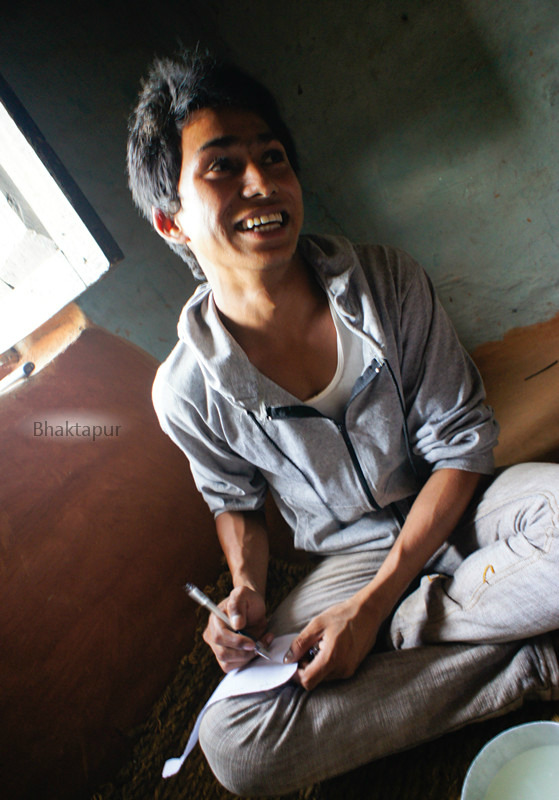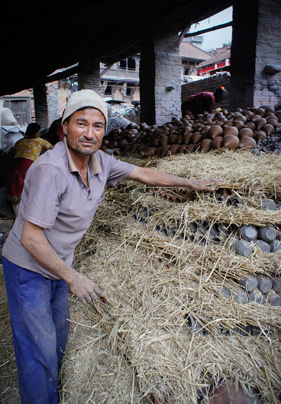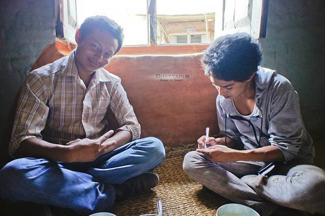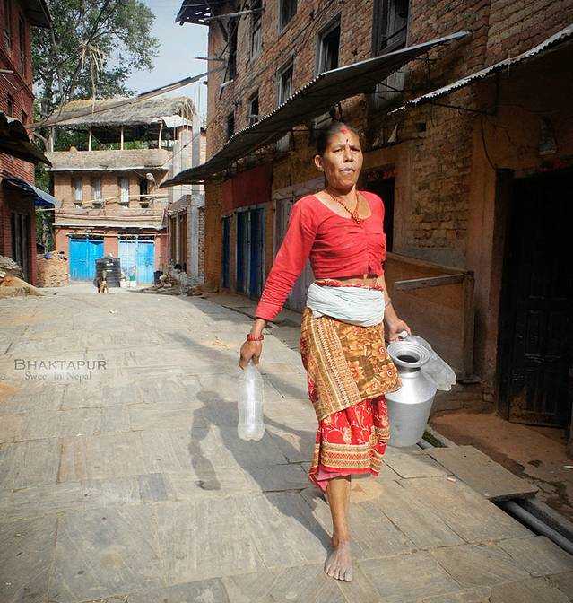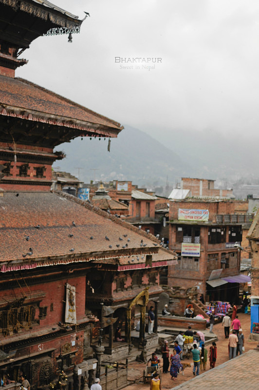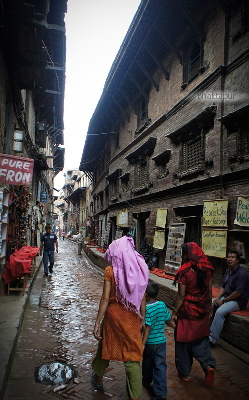 我们在巴德岗待的时间是一天(下午到,第二天中午离开去纳加阔)。因为田七想在巴德岗购物(为了孔雀窗),所以实在不够时间浪费在迷路这事儿上头,何况巴德岗有三个广场,除此以外,孔雀窗还在一条小巷中,虽然事先已经看过地图,但是,当我来到这错综复杂的小巷面前时,我——很果断的请了一个向导Asis,呵呵,500卢比,折人民币30多块钱。事实证明,这个选择很正确,他带我们去了很多其他游客都不能到的地方,此外还兼当搬运工,帮我把买的大件工艺品一路扛着,另外还请我们吃了一顿美味的当地农家晚餐,他告诉我一种叫chang的啤酒,说很美味,我尝了一壶,哈哈……如此种种,我才将巴德岗的题目取名为:对酒当歌,人生几何……:D