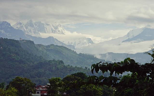 我来到的时间是尼泊尔的雨季,想看到雪山真的需要靠运气了,在这里停留的时间是2天,计划是去Sarangkot看日出,滑翔伞,泛舟费瓦湖,Devi's Fall,以及博卡拉周边几个寺庙。行程并不满,预想中我留了充分的时间,可以喝着马萨拉奶茶看着雪山发呆,想想女孩子的心事,呵呵。但所有的计划都被一场又一场的暴雨所打乱,无缘Sarangkot的日出、滑翔伞,倒成就了帅气的摩托车环湖骑行、与一个老外帅哥的奇遇,一场愉快的闲谈,和一顿美味的当地农家晚餐,呵呵。所以人生亦如此,有所失时,必有所得,无需执着介