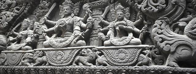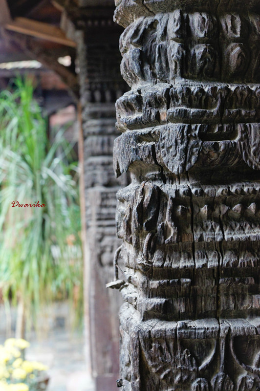 千余年的历史在古寺院区留下了许许多多的历史遗迹,诸如石刻、立柱、铜饰、木雕等,有相当多都是极富历史价值的艺术品。虽然由于年代久远而透露出些许斑驳,却丝毫未减损其美感,甚至因此而增添了古韵。想必每处都是有着典故的,可悲的是我对尼泊尔文化了解太浅薄,无从得知。