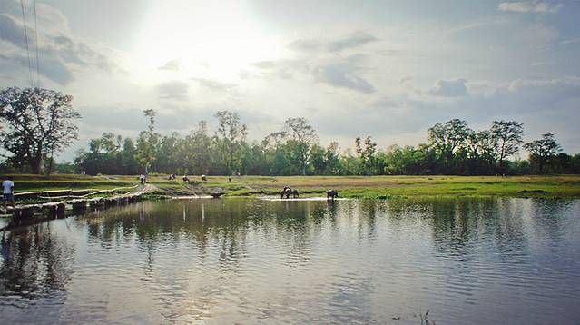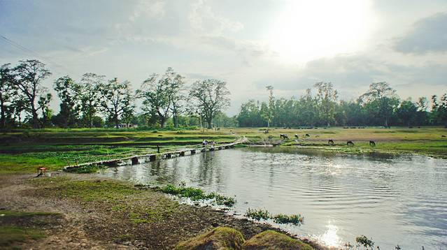 鱼尾山庄走出来后就是这个公园,真真是当地人的天堂,少女们在里面洗澡,汉子坐在菩提树下抽烟,孩子在田地上嬉闹,原谅我,我不敢打扰那“和谐”的场面。