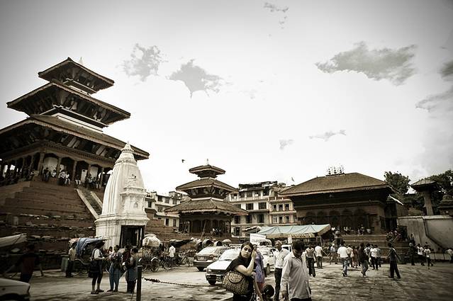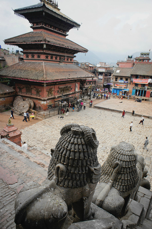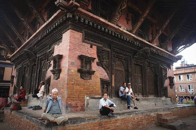 站在MAJU DEVAL寺的台阶上,时间会在不知不觉中消逝,在浑然不觉之间,你已经触摸了这座古城的灵魂……这里也许是全加德满都市最佳的聚会场所。几十年来的每一天,这里都有一个定格的画面:果菜商贩在大声叫卖,出租车和三轮车来往穿梭,小贩与游客讨价还价……于是,哪一天不小心,你也成了这个画面里的角色。