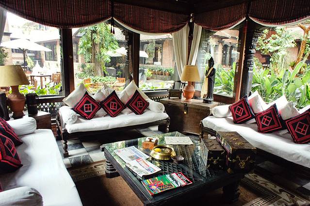 客房是花园丛林里的一栋栋独立的小屋,面对拉菩提河,鸟语花香——心里想着这不就是我们在都市中梦寐以求的住所么。