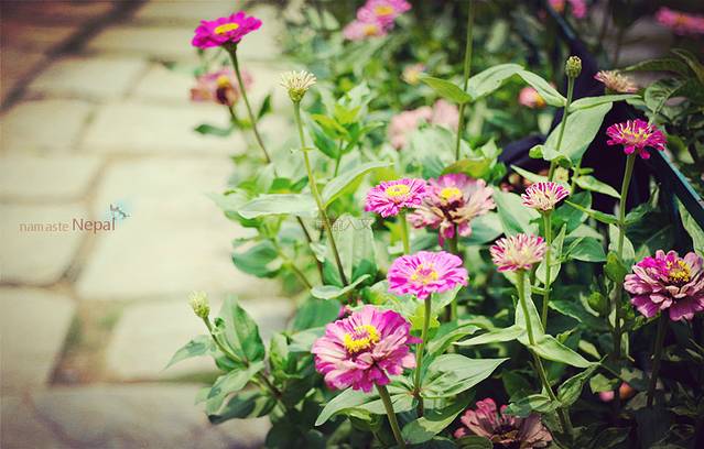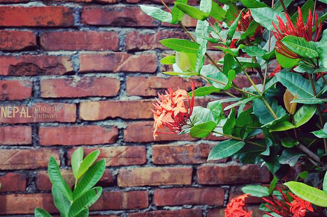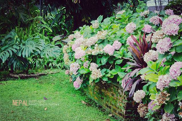 午后的日光懒散,树丛、鲜花嘻嘻哈哈,认真并肆意的向四周与天空伸展,就像尼泊尔人的态度一样。
