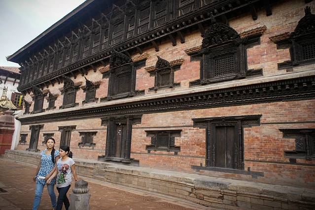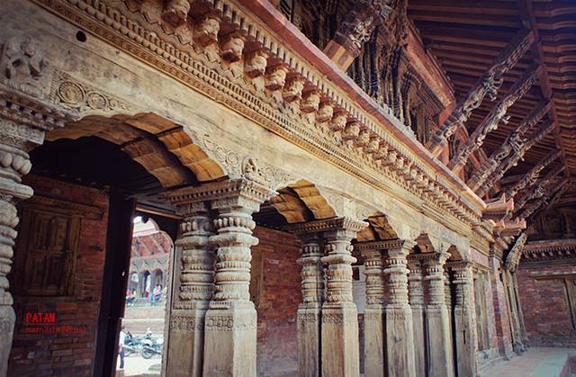 砖红色是帕坦古城的主色调,质朴的红砖和深栗色的精致木雕,加上密集的寺庙和砖石佛塔构成了古城特有的建筑风格。在帕坦闹市,甚至居民小巷,到处都有庙宇、舍利塔、石柱、神龛,每个建筑物的柱子上、门窗上都刻满了神像、花鸟和神话故事。特别是窗棂的雕刻格外精美,据说一个熟练的工匠,刻一扇窗户要用去半年的时间