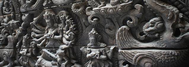 木雕一般选硬木为原料,以核桃木和檀香木最为精贵,坚硬的木质才能使雕像保存长久。民居的木雕以原木色和深棕色为主,从雕花的繁复与否可以看出家庭的贫富。而皇宫和庙宇的雕刻,更多以缤纷彩绘装饰,难怪其有“精致的艺术之城”的美誉了。