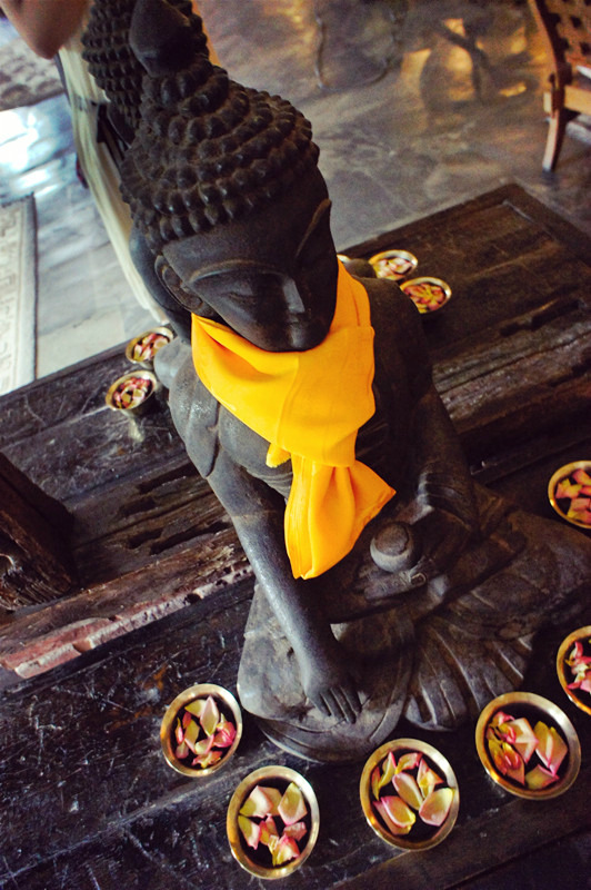 这样的时刻,是不需要其他人的,下午大雨,街道中的菩提树下,有果农拖着两大车果子在避雨,旁边是一个看似并非当地的MM,穿着莎莉,虔诚的蹲在树下的小神龛前,做着祈福的动作,在她的眉心,抹上了李子红的印记,那是神存在的痕迹。
