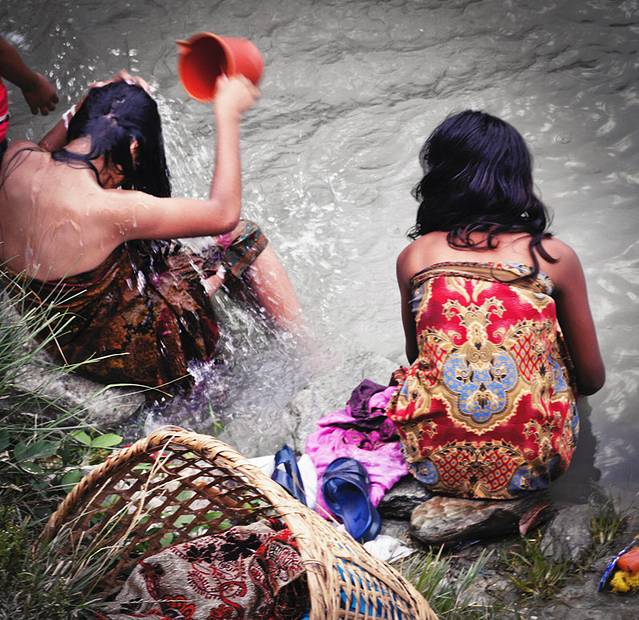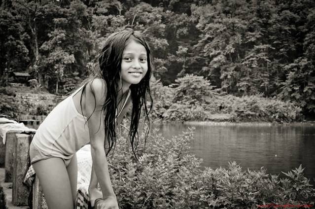 刚洗完走上岸的孩子,于是我对她说了一句namaste,她羞涩的微笑了一下,定格在我的相机里。