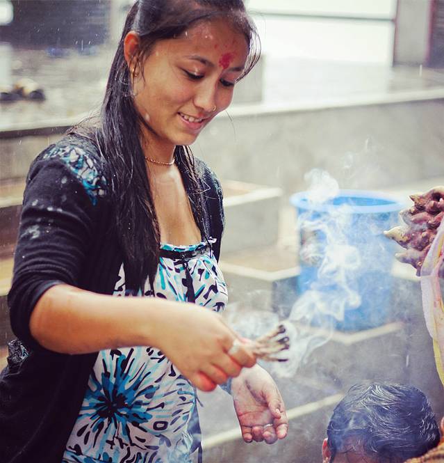 当阳光穿过晨雾迈进帕斯帕提那神庙,香烟缭绕的巴格马提河边开始聚集起色彩斑斓的人群,加德满都最古老的脉搏跃动起来。老人们以圣河之水清洗身心,并将河水灌进自己的喉咙。在游客惊诧的目光里,他们湿漉漉的身体在阳光下,闪闪发光。