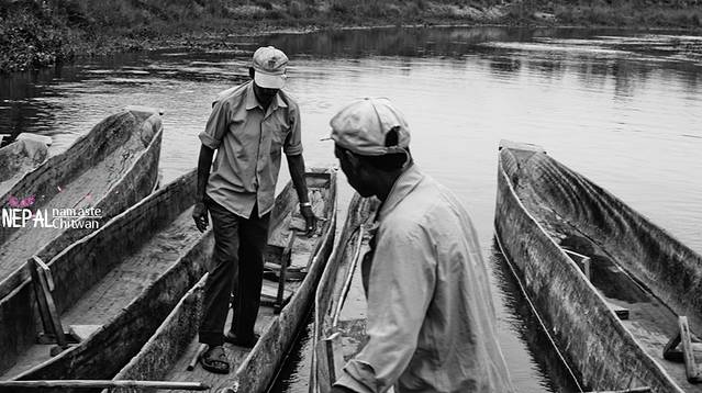 泛舟观鸟是行程之一。浓雾在太阳的加热下开始变薄。在我看来今天是个绝好的观鸟天气。太阳已经离丛林的树梢很高了,而来不及蒸发的薄薄轻雾,给河边的丛林披上了一层神秘的面纱,不时有各种各样的鸟儿以不同但优美的姿态从纱中飞出,间或还施舍给我们几声清脆的鸣叫,整个奇旺像个裹着纱丽的清丽少女,一边妩媚的展示着自己的风姿,一边变着法儿的逗你,让你陶醉的同时又有几分心灵的弦动。