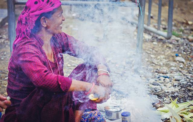 烤玉米的妇女,烤玉米是当地人很喜爱的零食,随处可见。浓烟滚滚,等玉米粒变成深黄色时,用火钳子从火堆中夹起来,拿掰落在地上的玉米叶子擦擦落在烤熟玉米上的木炭,一遍啃,还一边不停的换着手。望着这样的场景,仿佛又回到了童年,现在都市越来越注重食品卫生安全,这样原生态的场景,不多见了。