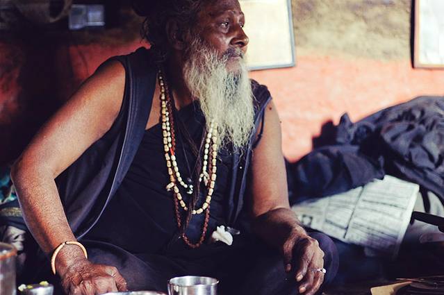 车子岔到一条小路,开往山林深处,又走了很久,来到一座神庙前,看门口的金刚杵和三叉戟就知道供奉的是印度教里的湿婆神。所谓BABA就是一位苦行僧,在当地德高望重,他们坚信身体的劳苦会让心灵更接近神明。