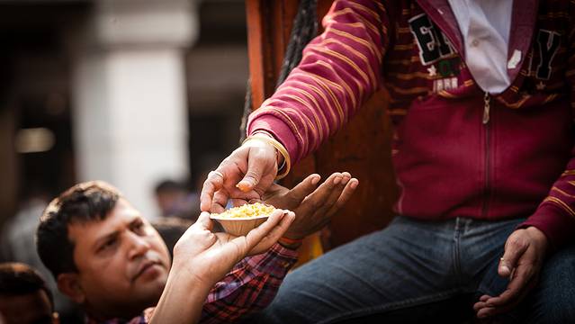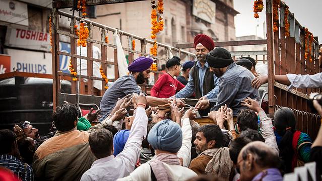 一路上碰到了一个貌似是仪式的活动,车上的人在免费发吃的~我对印度具体的细节还是不了解,所以也不知道他们在干嘛,就是看起来非常热闹,很多人跟在车后面要吃的~