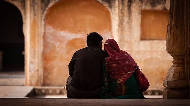 这张照片是在jaipur的琥珀堡拍到的,当时正好看到女的依偎在男的肩膀上,就马上顺手拍了下来,觉得满温馨的~同行的朋友看到照片也觉得ok,不过这时候发现他们刚走,所以就追了过去,给了名片~一问才知道原来人家是新婚夫妇~~~难怪呢~~