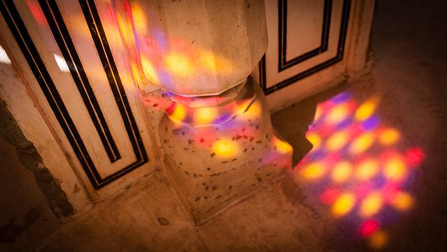 印度很多的景点里都有这种彩色玻璃,经阳光映照在地面上很美