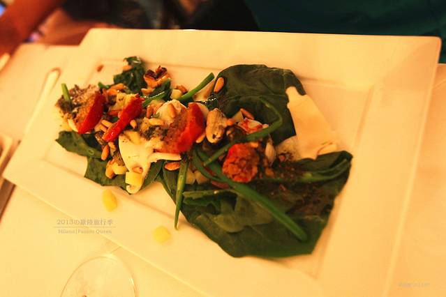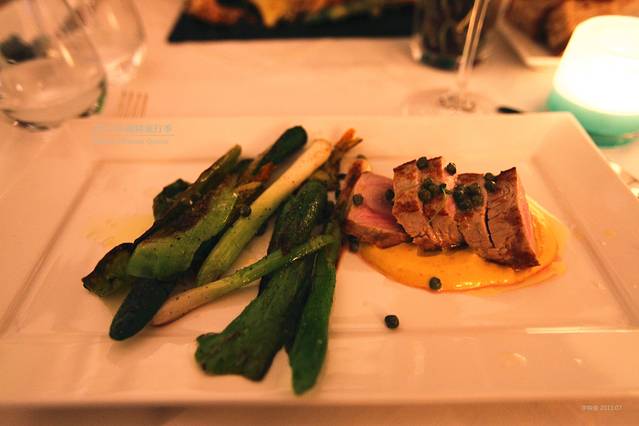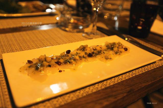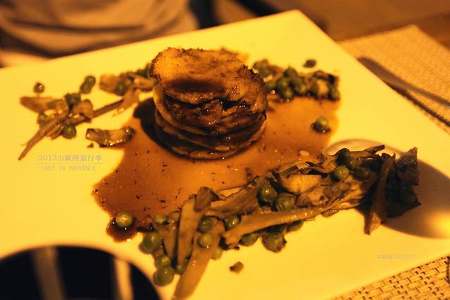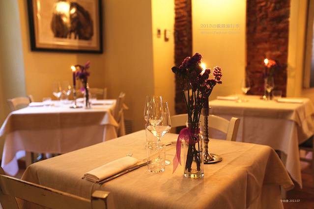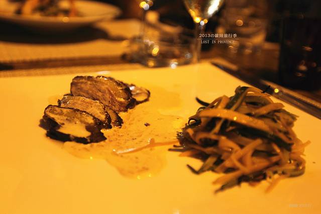 找了好几家 因为没有预定所以都吃了闭门羹 已是晚上8点 当地人也差不多是这个时间吃饭 抱着试试看的心情来到这家米其林餐厅 正巧外面刚收拾了一桌我们得以坐下 接着开始了冗长的一顿晚饭 从8点吃到11点多 天亮到天黑 不得不感慨法国菜COURSE之多