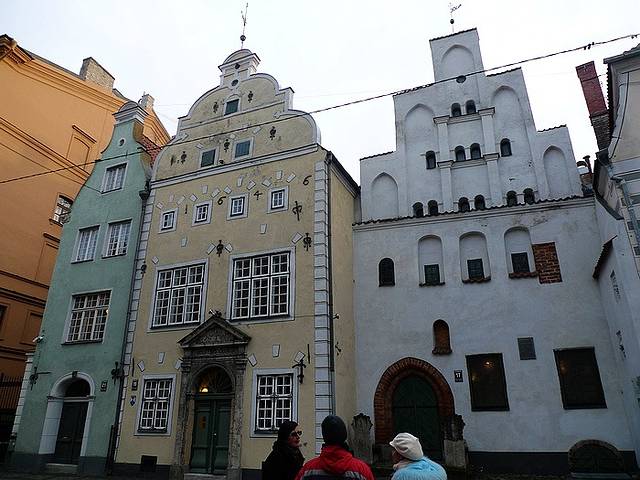 里加三兄弟Trīs brāļi是拉脱维亚首都里加最古老的民居建筑群。它们座落于Maza Pils街17号、19号和21号,每座住宅建筑分别代表中世纪住宅建筑不同的发展时期。最右侧的17号始建于15世纪,有着当时很流行的阶梯山墙和哥特式装饰。中间的19号是17、18世纪荷兰的风格主义建筑作品,至于风格主义,简单来说就是笼统指大约在1525-1600年之间偏离文艺复兴设计的和谐之美的一种倾向。从设计艺术自身的角度来看,手法主义可能源于一些年轻艺术家采取别样的方式超越前人的尝试。