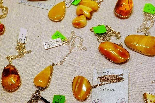 去了一个卖琥珀的家庭作坊,琥珀,是远古松科松属植物的树脂埋藏于地层,经过漫长岁月的演变而形成的化石。透明似水晶,光亮如珍珠,色泽像玛瑙。四千万年前,欧洲北部有大片森林。那时的气候温暖,尚无人类,树脂由今日松杉的祖先植物里淌下。那些原始森林没入水下,被泥土沉积物掩埋,树脂因此得以保存,迄至今天。许多北欧大片的地方变成了海底,这就是何以世上的琥珀大多出产于波罗的海沿岸的原因。老头告诉我们里加老城卖的琥珀70%都是假的,还教了我们一些鉴别琥珀的办法。