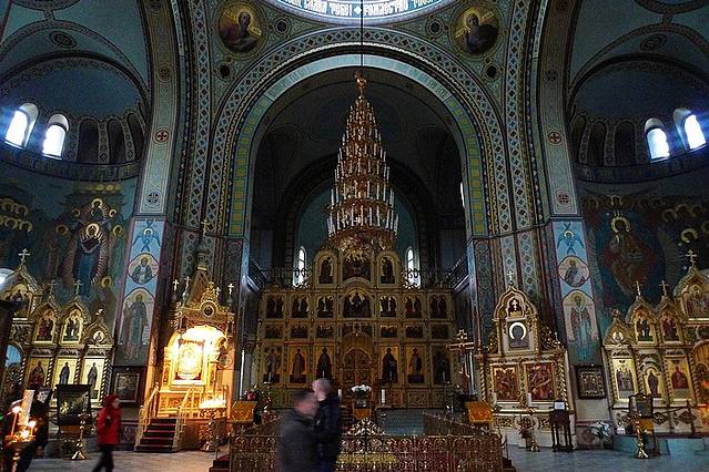 里加圣诞主教座堂是一座新拜占庭式的东正教主教座堂,兴建于沙俄占领时期的1876-1883年,是当时俄罗斯帝国波罗的省最大的东正教堂,它曾经得到过沙皇亚历山大二世的祝福。圣诞主教座堂以圣像著称。在第一次世界大战期间,德国军队占领里加,将这座东正教堂改为路德会教堂。