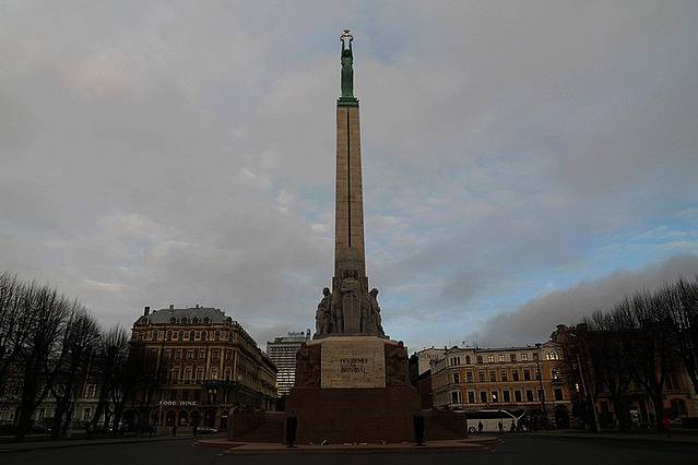 自由纪念碑Brīvības piemineklis于1935年建成,42米高的碑顶端,Milda自由女神手举三颗金星,分别代表拉脱维亚的三个历史与文化区:Vidzeme、Latgale和Kurzeme,上面还铭刻着“为了祖国和自由”的铭文。