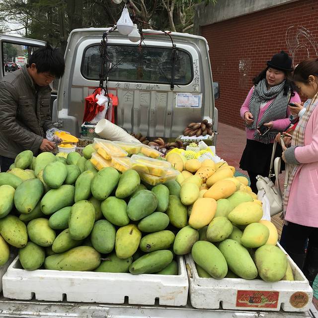 校园外路上这位大哥买的芒果超甜,感觉比别家的都要甜哦!
