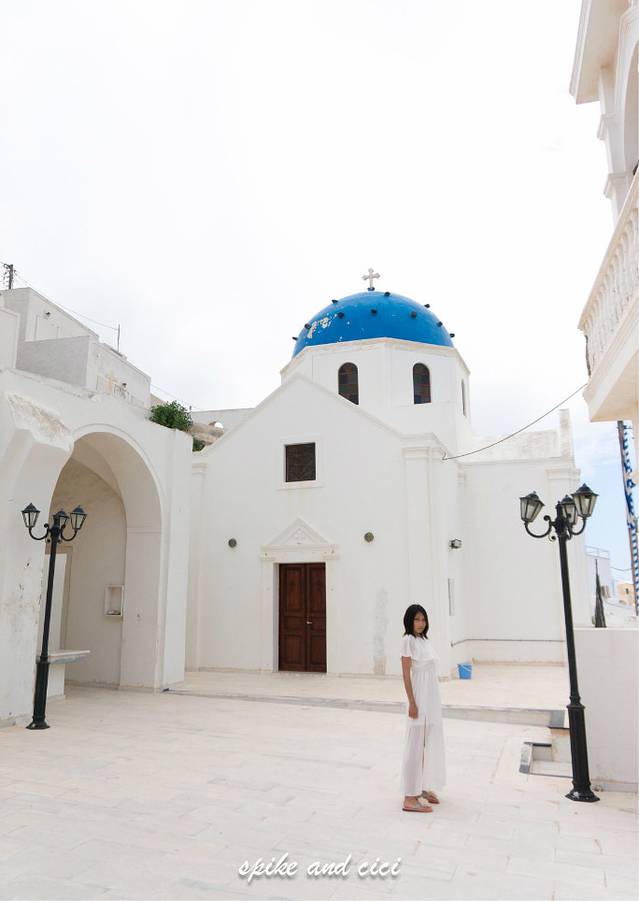 我引用前辈攻略里的话吧“走到一个饭馆叫做Mama Thira的,它家窗户上有时候会吊着鱿鱼和辣椒,饭馆附近有个放在屋顶的破船。沿着他家旁边的台阶爬上去,见小马路右转顺着路往高处走到一个小停车场就能看到蓝顶教堂了(2分钟路程). 沿着海边栈道走,你绝对不会miss这家饭馆和破船的”