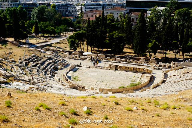 我们出了Syntagma地铁,按照地图往北走,有个小门像后门似的,我们看有人进去,也不知道是不是,一个当地阿姨都没等我们问,抬手一指,意思就是这,真贴心。我们进去买了票,先看到的是歌剧院遗址,然后一直往上走就是卫城神殿了,这条路没什么人知道,所以都没人不知道他们走正门的都怎么走的