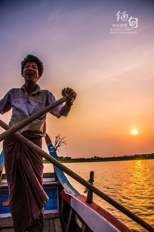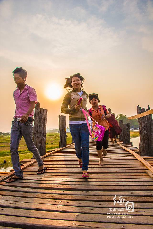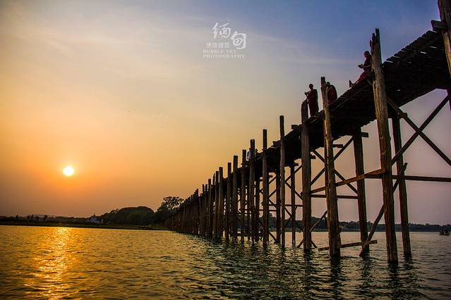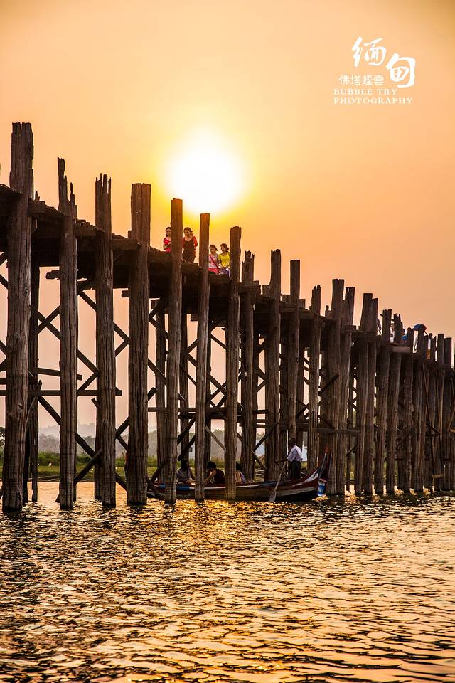 可惜我们来的季节不对,即使是乘船,也无法拍到太阳落下时正巧到桥下的视角。不过在日落的余晖下,无论是柚木制的桥,还是桥上的人,都呈现出温暖柔美的色调,怎么拍都美得心醉。