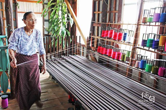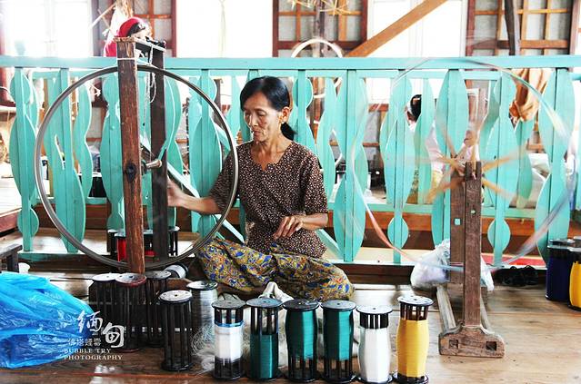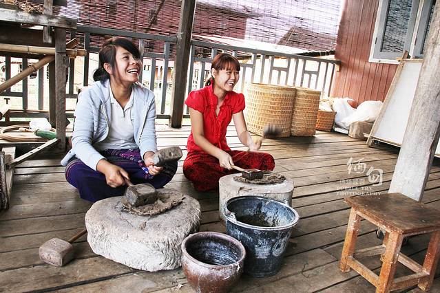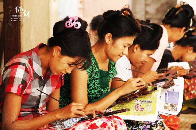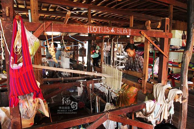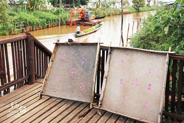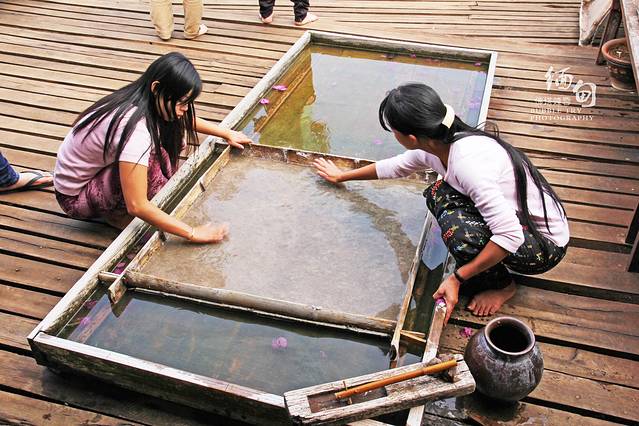 在这里你还可以看到非常原始的造纸艺术,在缅甸不少地方都可以买到这种带花瓣的纸,有的订成本子,有的做成纸扇。