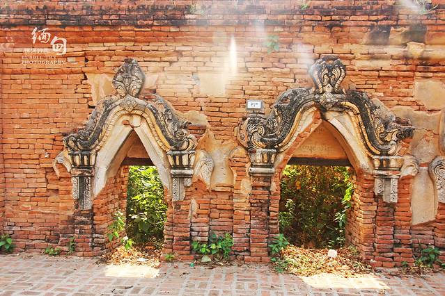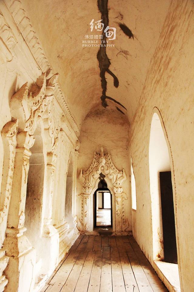 马哈昂美寺,Maha Aungmye Bonzan,个人觉得因瓦古城最具看点的一个地方,嵌套式的结构,房子套房子套房子套房子俄罗斯套娃的感觉,里面其实除了走廊本身也没什么东西了。19世纪贡榜王朝的建筑代表作。沧桑斑驳的黄色墙壁,层叠着烦琐的海浪般的雕花,很漂亮。