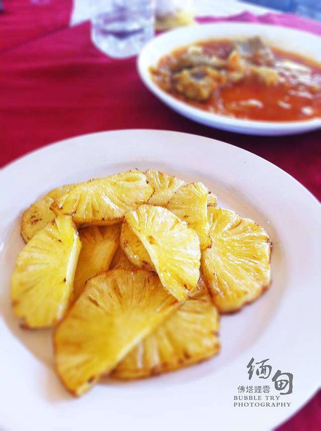 中午由包车师傅拉我们去了一家因瓦古城河对岸码头的饭店,一下车,几个小姑娘就打扮得花枝招展地拉我们进店,她们最大的也不超过十岁,不过一看接待客人就非常老练。这家餐厅价格确实不便宜,不过我们也认了。