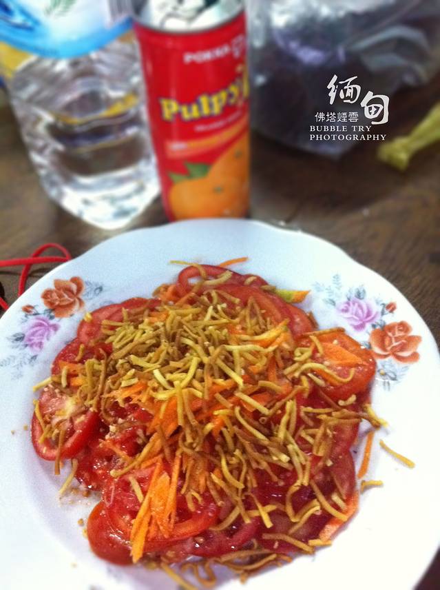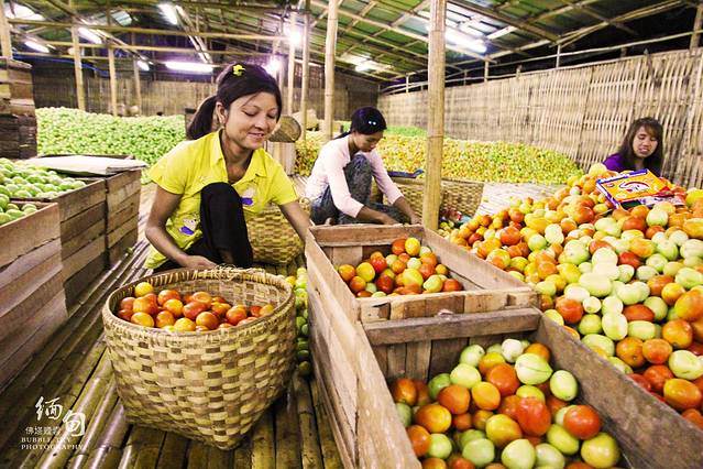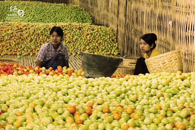 回到陆地的时候天色已经很暗了,偶然间路过一个亮着灯的小屋,仔细一看不由惊呆了,竟然是一片壮观的“番茄海洋”。青色的西红柿堆满了草屋,朴实的缅甸姑娘蹲坐在期间挑挑拣拣,看到我们来还冲我们笑,临走时还送了我们几个西红柿>www<