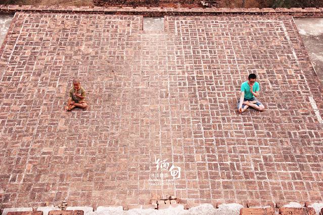 躺在曼德勒山寺院的地面上睡了几分钟,醒来看到云层里跳出的太阳,毫无力气举相机,就静静地与它对视,世界静下来心也静了下来。