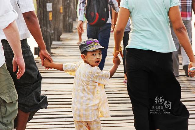 在因瓦古城意外地花了不少时间,最后匆匆忙忙赶去看乌本桥的日落。刚来到乌本桥的时候,首先看到了这么一大家子在拍“到此一游”照。