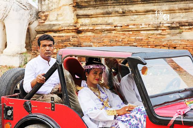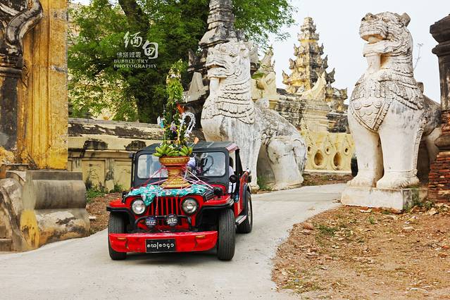 在马哈昂美寺的入口,正赶上了一队婚礼车从寺庙大院里开出来。