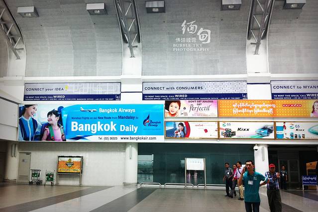 下午的飞机,于是回来后稍事休息,喝着袋装的冰咖啡,就上了车去遥远的曼德勒机场,机场真的很遥远,开出去城市很久很久,我们看着这城市周边都是荒野,随便一个地方都能建机场,可偏偏就要在那么远的地方建,真是无法理解。