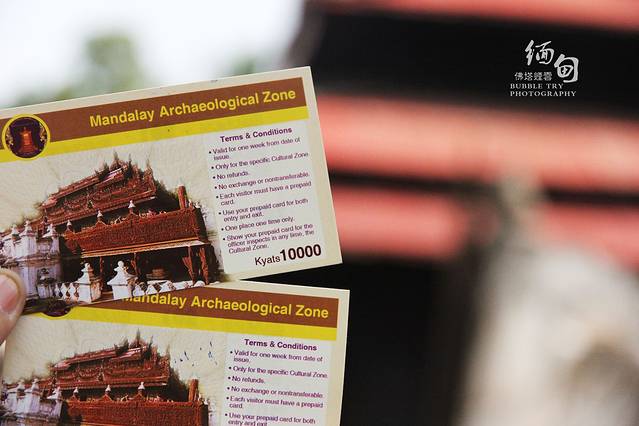 10美元票:5天内有效。市内包括古城和皇宫、独特僧院、曼德勒文化博物馆、固都陶佛塔、金色宫殿僧院,市外包括因瓦、阿玛拉普拉古城。3美元票:3天内有效。包括敏贡、实皆古城。