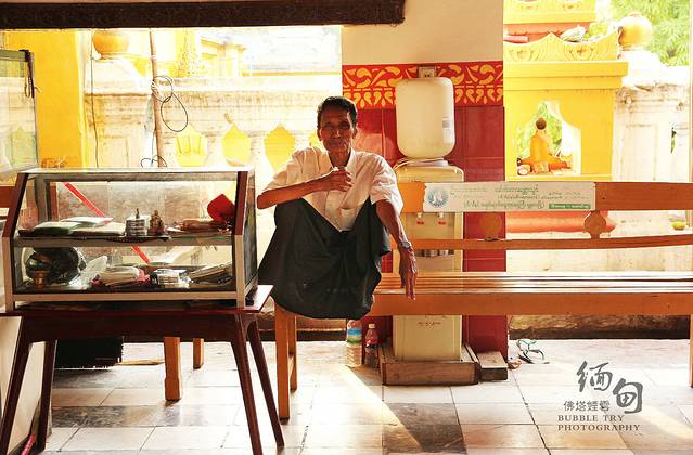 缅甸人拍照还是蛮有意思的,一脸端庄。在这里游荡给当地人拍照的时候我也深有感触,明明拿着相机和他聊天比划的时候,对方笑得一脸灿烂如花,可相机一端起来要给他拍照了,人家就立刻收敛起笑容,严肃地直视着镜头等待被拍……我想拍到的好表情……都没有啊哭……