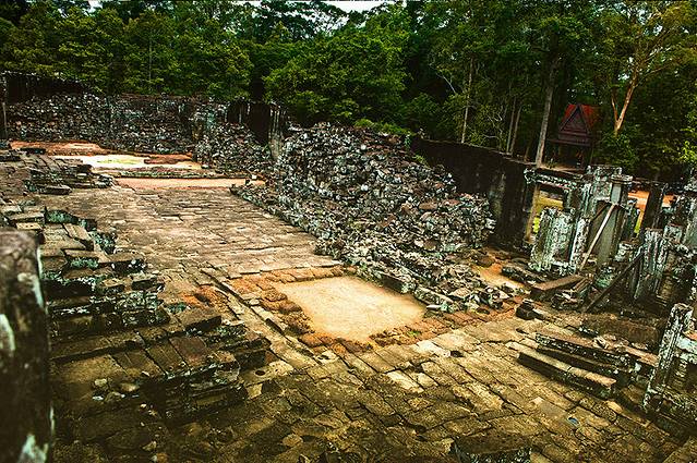 塔布笼寺是高棉国王阇耶跋摩七世为祭祀母亲而修造。现在的塔布笼寺正在被丛林吞噬,盘根错节的热带树木侵入石块中生长,在撕裂建筑的同时也支撑着庙宇,使其不至于完全倒塌。