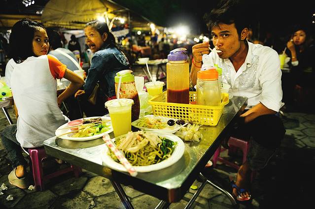 夜市里几乎都是本地人,我这个扛着相机要了一堆烧烤、炒面、果汁的Chinese girl,自然吸引不少本地人的目光。不知道他们是惊讶于我的肤色,还是我的食物?