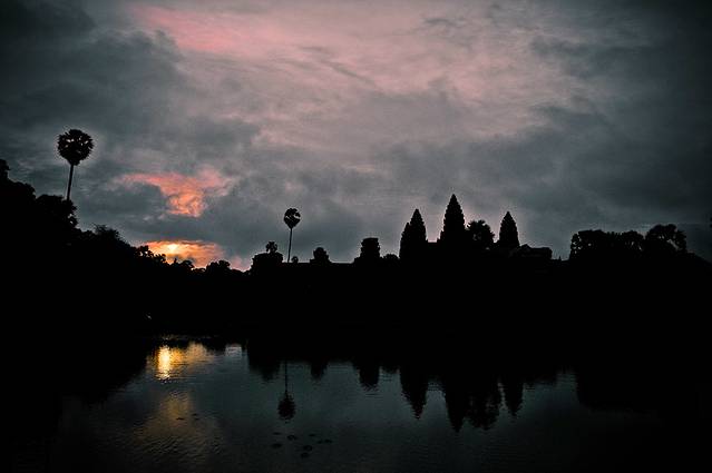 清晨的暹粒气温微凉,裹上外套,大约十分钟后,到达吴哥寺,也就是小吴哥。这里是看日出的最佳地点。