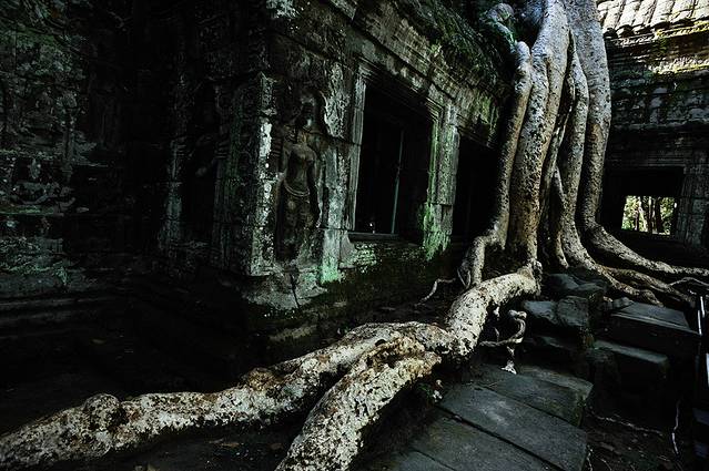 也许多年后塔布笼寺会彻底湮没于丛林,但目前我尚可看到参天巨树与高棉寺庙千年以来的纠缠。